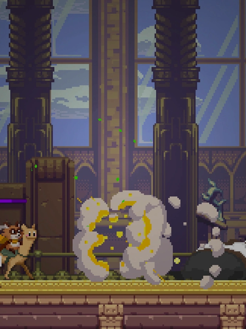 SuperEpic is a satirical and humorous Metroidvania style action-adventure game, starring a raccoon and a llama in their quest to save an Orwellian society from the rule of an evil corporation. RegnantCorp is an enterprise which is controlling minds through abusive micro transactions.