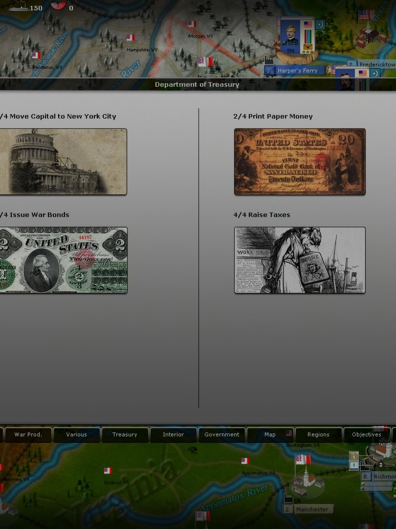 You take the part of the military and political leadership, trying to lead your nation to victory, in the midst of some of the toughest operations of the Civil War. You will build, organize and command your armies over one of the largest maps of the USA ever made for a Civil War game.