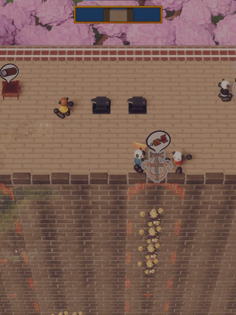 You and your friends play as four brave engineer pandas in their new improvised role : defender of the Great Wall of China. A game in local coop, can be played by four person. Follow the plans and organise to make your ammunition to repel your countless enemies !