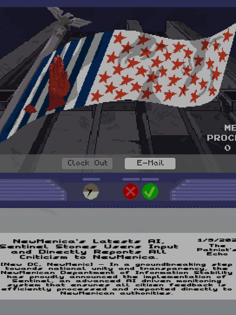 Congratulations! You are selected to work in the Media Regulation Branch to safeguard NewMerican values. Dive into this dystopian puzzle game; censor newspapers, discover secrets, and ban those who oppose NewMerica.