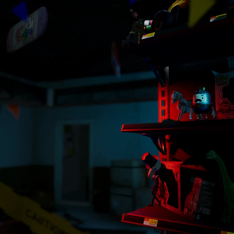 KEEP OUT is a horror puzzle adventure Game. Players explore Devota Hill by manipulating Mr. M in 3d side scrolling views. Survive from all threats. You are the lord of toys. With all your toys paying attention to you, think only about salvaging the world of threatened toys!
