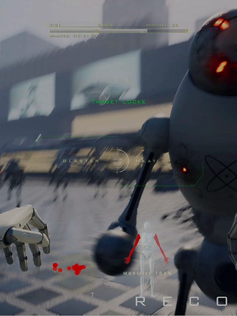 THE ROBOTS ARE COMING! Unleash your arsenal of innovative arm mounted weapons and vehicles to defeat the robot hoards. Fight across multiple mission types and environments In this fast paced single player shooter.