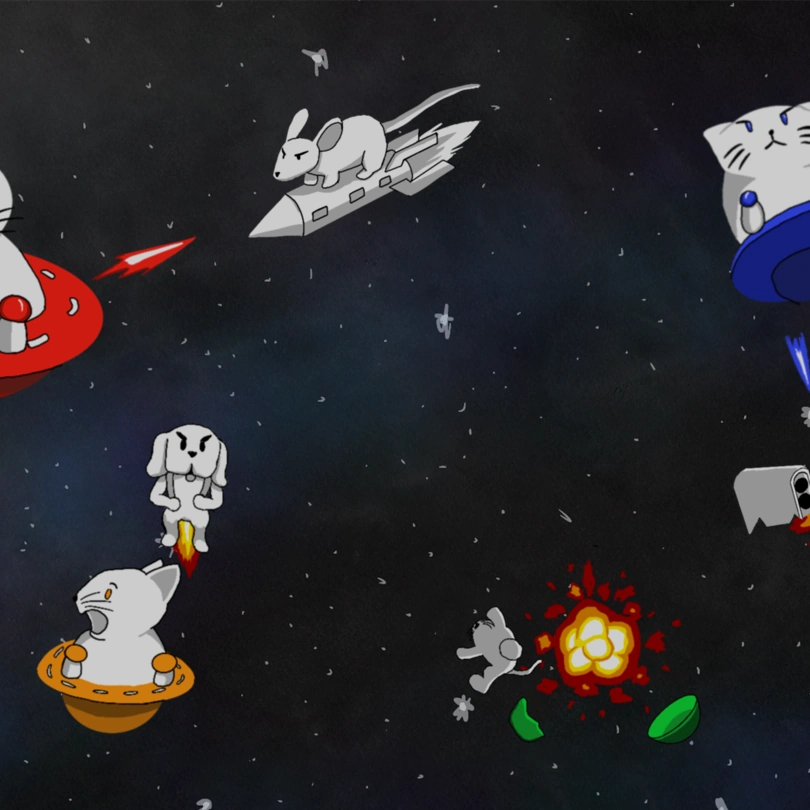 Unidentified Feline Obliterators is a multiplayer arcade space shooter where you play as cats shooting deadly balls of matter in space! Their natural predators are the jetpack dogs, treadmill porcupines, and rocket rats. But what else is out there in space out to get these cats?