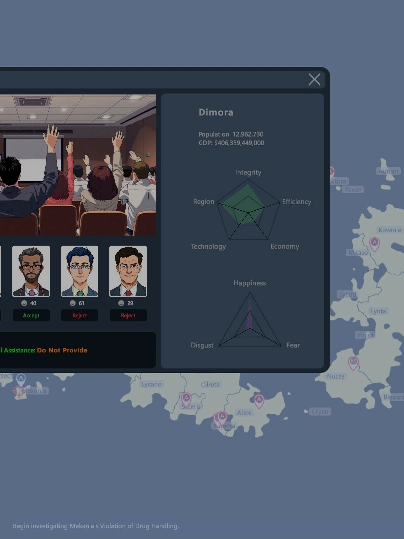 Running an international organization called the Global Quarantine Bureau, dealing with pandemics and public health issues worldwide, while also ensuring increasing revenue and personal enrichment.