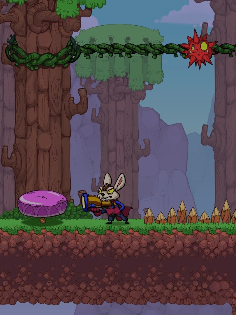 The game is a cartoon-style Metroidvania. Explore winding mazes, ancient temples, and fiery caves. Fight in fast-paced battles against aggressive oversized vegetables and mutant beetles. Gear up with customizable guns to stop the inhumane experiments of a mad scientist!