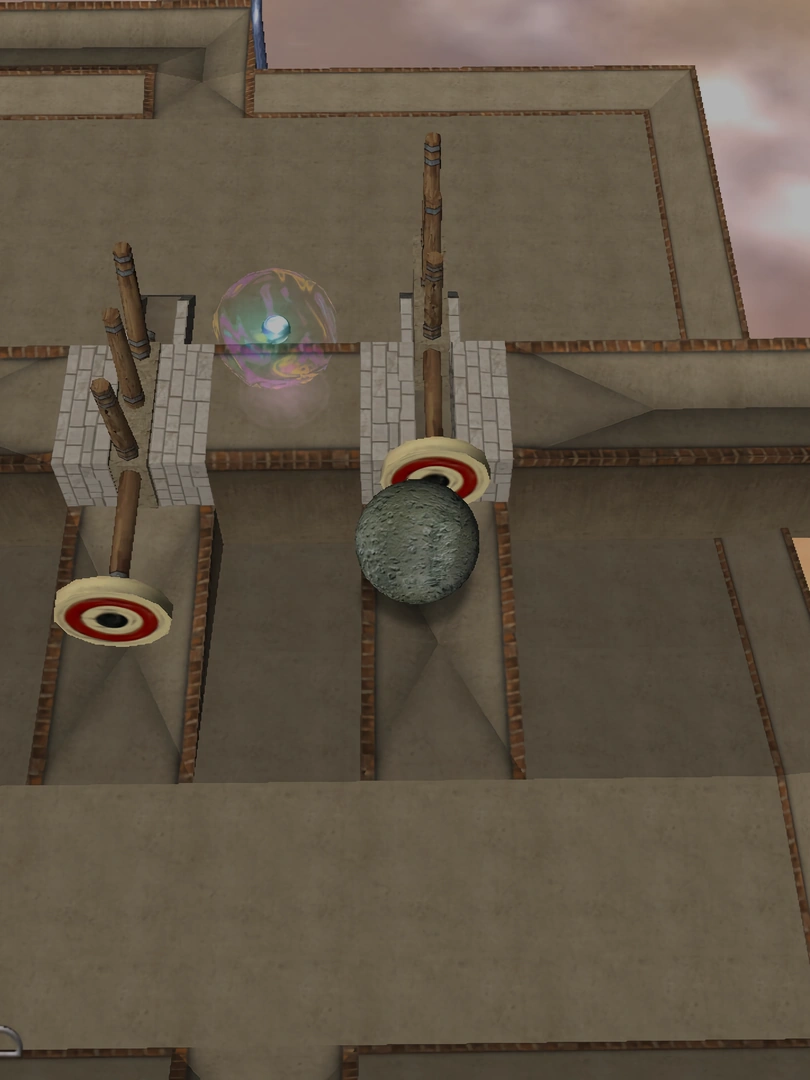 In this 2004 classic originally released by Atari games, you will navigate 12 sky-high courses. Each course is fraught with different obstacles that will block your path, slide your marble off course, or blow them right into the bottomless void below.