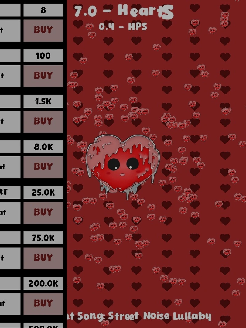 Heart Idler is a clicker/idle game where you start with nothing and build your way up to a vast collection of hearts! Click to generate hearts, invest them in powerful upgrades, and watch your heart count soar. Can you unlock all the upgrades and achieve the ultimate collection of hearts?