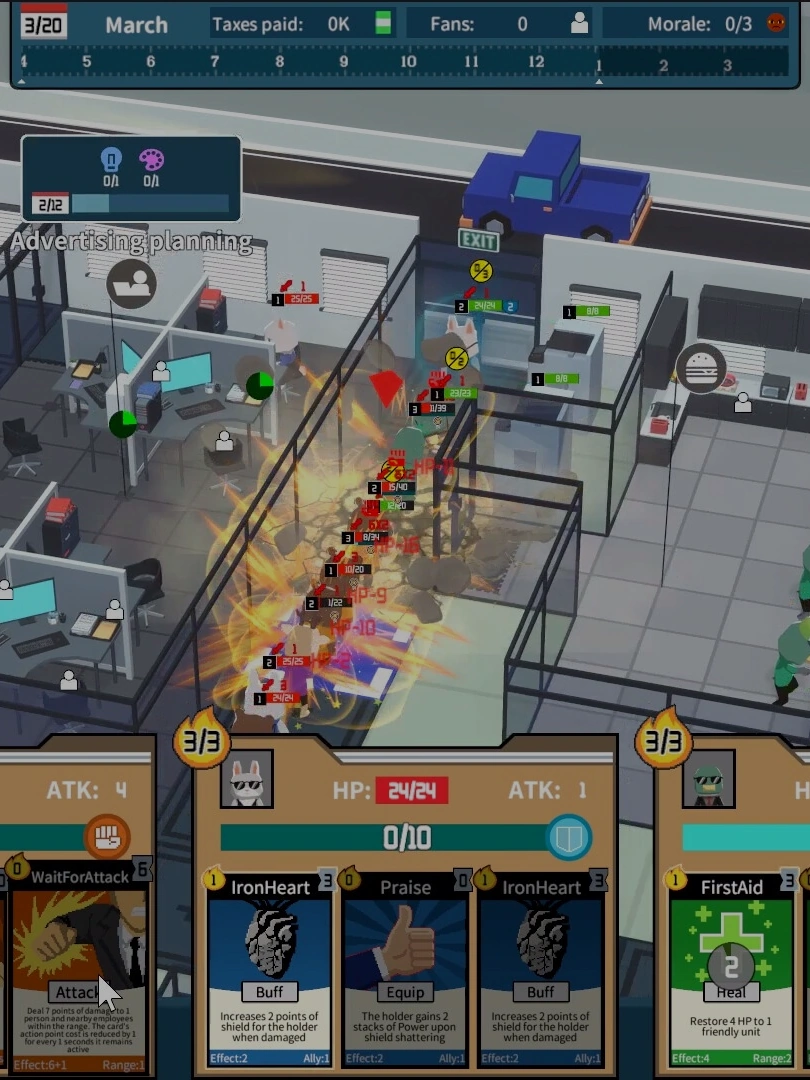 This is a business simulation + tower defense + card game. Players will play the role of the boss, use cards to build facilities, allocate talents, and force overtime to make profits. Players will jump out of the perspective of workers and experience the overtime culture as operators.