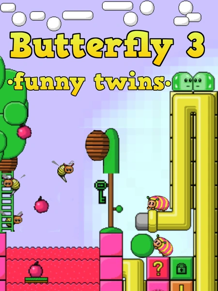 The third part of the puzzle-platformer Butterfly - Funny Twins! 40 steps to victory with these funny twins! Bounce off enemies, climb into pipes, measure distance, use obstacles to complete levels without misfire.